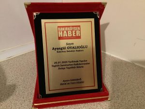 Biz de program sırasında plaketleri, Dr. Meltem Güler Hanımefendi’ye ve Asude Yaşam ve Sağlık Merkezi Kurucusu Sayın Fikret Bayrak’a takdim ettik. Ayrıca, Bakırköy Belediye Başkanına iletilmek üzere plaketi, Ataköy İspirtohane’de görev yapan Yüksel Bey’e teslim ettik.