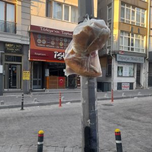 Cevizlik Mahallesi, Mor Sümbül Sokağı’nın başında, A101 marketin önünde bir elektrik direği var. Her gün bu direğe bir ekmek asılıyor. Bu ekmeği kim asıyor, neden asıyor, kimin için asıyor? Bu konuyla ilgili mahalle sakinleri olarak biz de bilgi sahibi olmak istiyoruz ki, bu davranışın anlamını ve amacını doğru anlayabilelim.